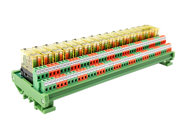 ④ 柵欄式端子輸出 ⑤4路繼電器模組,體積減小到最小⑥ 采用LED動作顯示,各輸入輸出端狀態 一目了然