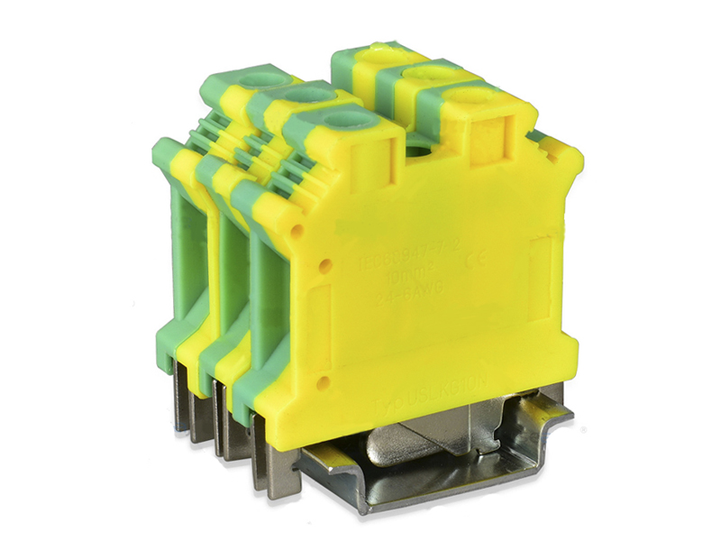 USLKG10黃綠接地端子根據IEC60947-7-2標準USLKG10接地端子最大電流76A剛性導線接線范圍0.5-16mm柔性導線0.5-10mm,ZB10標記條,其采用全封閉式結構.取材全銅和防火等級94-V-2之尼龍66顏色為黃綠雙色設計,功能:將設備的漏電導入大地,可以有效的避免由于漏電而造成的事故.通常叫做黃綠接地端子,USLKG10外觀和USLKG3,USLKG5,USLKG6,USLKG16B,UISLKG16相同
